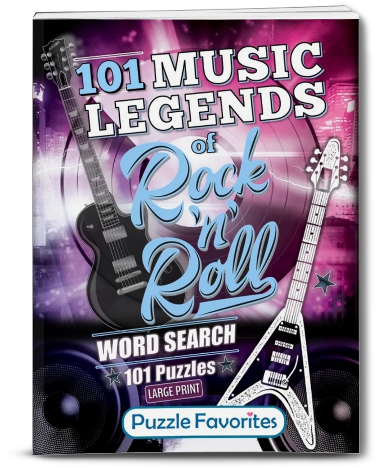 101 Music Legends of Rock 'n' Roll Word Search Puzzle Book celebrates the icons of rock music with 101 themed puzzles featuring the greatest names in rock history. From the pioneers of the past to today’s chart-topping legends, this collection is a tribute to the music that changed the world.