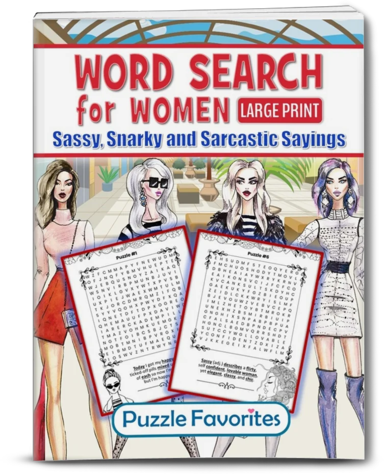 Word Search for Women – Sassy, Snarky, and Sarcastic Sayings is a bold and fun large print activity book made for women who speak their minds and embrace their wit. Each puzzle is paired with a clever saying and a playful illustration of a sassy woman to color or doodle.