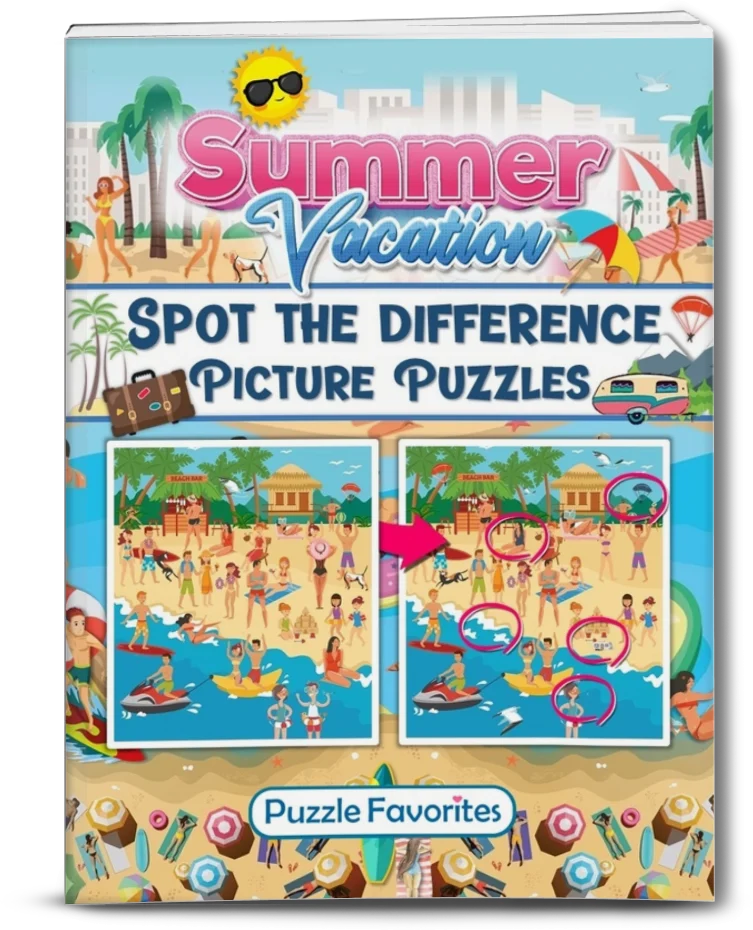 Summer Vacation Spot the Difference Picture Puzzle Book is packed with fun, full-color puzzles featuring beach days, camping trips, poolside fun, and everything you love about summer. Each illustrated scene captures the joy of the season, from tropical beaches to mountain getaways.